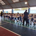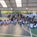 No período da tarde o “Projeto Escola Arteris – Trânsito Seguro no Bairro” contou novamente com a Secretaria Municipal de Ordem Pública, que elaborou ações educativas e colocou em pratica com os nossos alunos das turmas do 1º ano, infantil 4 A e as turma do Infantil 5 A e B, com objetivo de incentivar a formação de cidadãos conscientes no trânsito desde a primeira infância. Os gerentes de Educação para o Trânsito, desenvolveram as atividades mais direcionadas ao público infantil, com brincadeiras educativas, como o circuito com semáforo e placas e o tabuleiro com frases de conscientização sobre o trânsito, ensinando a responsabilidade que se deve ter no trânsito com respeito e obediência à sinalização. Iniciaram com uma roda de conversa, na sequencia um guarda fez a brincadeira do trenzinho, outro agente vestiu um semáforo para simular com as turmas (pare, atenção e siga em frente) e depois levaram os alunos na atividade expositiva subiram na moto e no carro do guarda do trânsito, tiveram oportunidade de apreciar e observar a roupa e equipamentos do agente de trânsito. foi uma tarde maravilhosa com nossos pequenos e com os agentes de trânsito do nosso município. As professoras em sala montaram um carrinho (infantil 4 A), as turmas do infantil 5 brincaram com a música do ônibus e montaram um automóvel com recorte e colagem em papel, já turma do primeiro ano fez um texto sobre o semáforo.