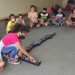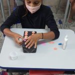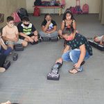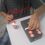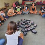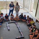 Construção de um dominó gigante com a reutilização de caixas de leite, que foram transformadas em peças do dominó. Com criatividade é possível diminuir o impacto do lixo no meio ambiente.