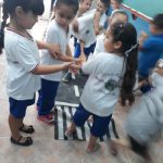 Formando pares, uma criança deverá representar um adulto e a outra pessoa uma criança e depois inverter os papéis (vale ressaltar a forma que o adulto segura a mão da criança, pelo pulso, para que não haja possibilidade da criança se soltar por qualquer motivo)