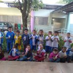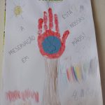 -Pintura com guache e desenho com a frase “a preservação está em nossas mãos”.