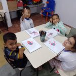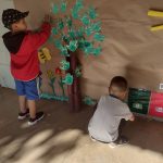 -Confecção de vasinhos com potes de iogurte e florzinha com papelão.