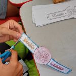 Neste dia, os alunos confeccionaram pulseiras, já previamente trazidas impressas pela professora, onde puderam cortar e colorir da forma como mais gostariam, nelas haviam os dizeres “Pare, pense e mude”, trabalhando a relação com um trânsito seguro.