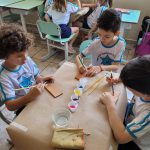 Após assistirem vídeos sobre a importância de cuidar do meio ambiente, o que as queimadas e corte de árvore pode provocar no meio ambiente, os alunos conversaram e listaram o que eles podem fazer para ajudar, refletiram que as mudanças começam com pequenas atitudes. Após toda essa conversa, pintaram um quadrinho, para levar para casa, simbolizamos como o nosso talismã, nele retrata a beleza de nossas matas e o cuidado que temos que ter com o lugar onde vivemos.