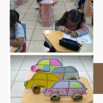 As crianças puderam confeccionar seu próprio veículo, utilizamos lápis de cor, tinta guache para que eles produzissem o carrinho.