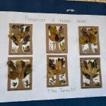 A atividade artística foi produzida com folhas secas coletadas pelos alunos. As folhas foram coladas em tiras de durex, formando a copa de árvores em um grande mural coletivo.