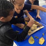 O projeto uniu criatividade, consciência ambiental e sensibilidade artística. A turma foi convidada a observar de perto as folhas de árvores que caem naturalmente pelo pátio e pelos arredores da escola. A partir desse olhar cuidadoso, as crianças descobriram que aquilo que muitas vezes é visto como “descartável” pode se transformar em arte, beleza e reflexão.