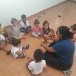 A professora Roxanie, trabalha com a turma do maternal I A, ela fez uma roda de conversa com sua turminha e explicou que há vários tipos de árvores, aquelas de dão frutos gostosos, outras que embeleza a nossa paisagem, outras nos dão uma sombra maravilhosa, e que todas as árvores são muito importantes para nós, que devemos cuidar muito bem de todas.