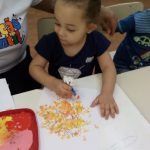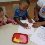 Mas que nesta aula eles iriam fazer uma atividade sobre a árvore muito bela e colorida que enfeita a natureza, ela explicou que eles iam usar a tinta de dedo e vários cotonetes para fazer vários pés de Ipês.