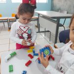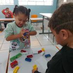 Juntamente com os alunos, foi trabalhado a coloração das frutas, sabores, importância do consumo consciente das frutas, dos benefícios que se tem quando consome de forma correta, e depois incentivado o compartilhamento das peças entre todos, e a socialização na brincadeira, de forma que todos conseguissem montar juntos e reconhecer quais alimentos eram.