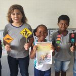 Em seguida contou uma história relacionada ao tema, para que os alunos identifiquem comportamentos que proporcionem segurança no trânsito e os comportamentos que proporcionem ou comprometem essa segurança.