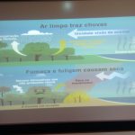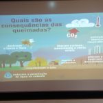 O objetivo da aula foi levar os alunos a refletirem sobre a ação humana e o meio ambiente, consequências dessas ações. Conceituar queimada e contextualizar tal ação através da história da agricultura. Compreender as consequências de tal prática e todo tipo de poluição causada por ela. Propor ações, alternativas ou possíveis soluções para evitar ou minimizar os danos ambientais causados pelas queimadas. Foi passado em powerpoint na lousa digital da sala e fomos discutindo cada tópico. No final abriu-se um espaço para que cada aluno falasse do que aprendeu e como podemos mudar isso na prática, como podemos ajudar a não destruir o meio ambiente, evitar as queimadas.