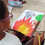 Atividade de pintura representando as queimadas no município.
