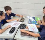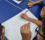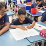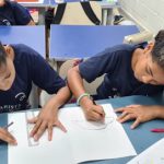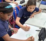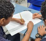 Na prática, alunos desenhando sobre tema Educação no trânsit