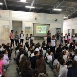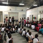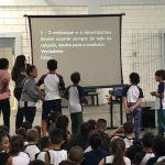 Para tornar o QUIZ mais divertido e competitivo, as crianças foram divididas em dois grupos e após terem acesso as perguntas, precisavam sair correndo, pegar o apito em local determinado, o apitar conseguindo autorização para responder.
