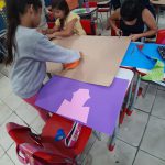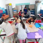 Caixas de papelão, tesouras, e.v.a e cola .