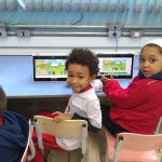 Texto: Em roda conversamos sobre reciclagem, de como devemos descartar os lixos, falamos sobre as cores das lixeiras e depois l utilizamos o chromebook com o jogo – relacione reciclagem. As crianças aproveitaram bem a atividade sendo assim satisfatório e divertido.