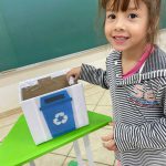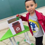 As crianças assistiram a um curta metragem da turma da Mônica sobre os três R’s (reciclar, reutilizar e reduzir) e realizamos uma roda de conversa sobre o que é reciclagem e a sua importância para o cuidado com o meio ambiente, apontando o malefício da produção de lixo. Apontamos a coleta seletiva e os cestos de lixo necessários para a reciclagem, conversando sobre como cada cor significava um material reciclável, nesse sentido, eles receberam um objeto e destinaram ao cesto com a cor certa para a reciclagem.
