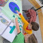 Além do desenvolvimento motor, as crianças participaram de uma criação artística, organizando um planeta com várias árvores. Essa abordagem prática e criativa contribuiu para fixar a mensagem sobre o valor da conservação ambiental e que podemos fazer a diferença quando somamos forças.
