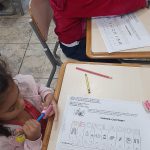 Após as atividades desenvolvidas na prática, agora os alunos estão realizando as atividades escritas para sintetizar o conhecimento sobre reciclagem de como devemos proteger o nosso “Meio Ambiente” através de ações socioeducativas.