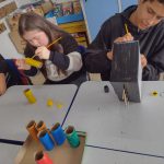 Com a história lida da revistinha em quadrinhos “Resíduo” , além do desenho para o concurso também a turma teve a ideia de confeccionar brinquedos recicláveis. Os materiais utilizados foram rolo de papel higiênico, retalhos de EVA, tinta guache, pincel, barbante, embalagem de amaciante, caixa de sapato, grampos de roupas, palitos de espetinhos, tesoura e cola. Cada aluno realizou a atividade de acordo com a sua capacidade. O trabalho ficou muito legal.