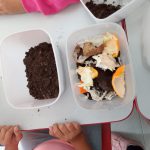 Como parte prática do projeto, os alunos participaram da construção de uma mini composteira para a produção de adubo orgânico. Para isso, utilizaram potes de sorvete reciclados e aprenderam sobre o processo de decomposição dos resíduos orgânicos e seu papel na produção de adubo.
