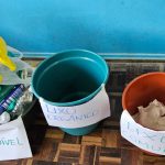 Os alunos trouxeram de casa diferentes tipos de lixo e em sala de aula separarem da forma que achavam correta (LIXO COMUM/ LIXO RECICLÁVEL e LIXO ORGÂNICO), em seguida foi feita a comparação de cada lixo, reavaliando nossas atitudes e recolocar o lixo corretamente.