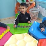 Após roda de conversa com os alunos onde abordamos a importância da produção consciente de lixo, da separação dos vários tipos de lixos e da coleta seletiva, foi dado uma tira da caixa de ovo em formato de lagarta para pintar. Cada criança escolheu a cor para pintar seu brinquedo. Depois a professora colou os olhos e as anteninhas. Com o brinquedo pronto para manusear, eles brincaram dentro da sala de aula e depois levaram para casa, para compartilhar com seus familiares o que aprenderam na escola.