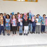 A professora realizou a leitura de uma história, “Gato Xadrez” e em seguida, auxiliou os alunos a produzirem um gato, através de um vidro de amaciante já utilizado, que iria para o lixo.