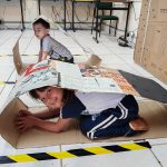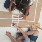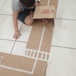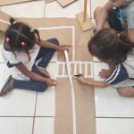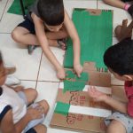 - Em grupos, as crianças ajudarão a fazer o circuito de trânsito usando pedaços de papelão para formar ruas e cruzamentos.