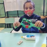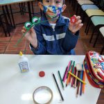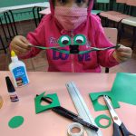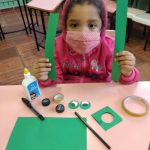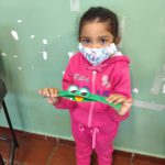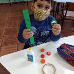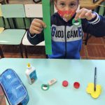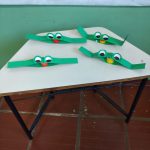 Os alunos junto com a professora foram até o bag de reciclagem da escola procuraram material para criar um sapinho de reciclagem usando tampinhas de garrafa já usadas pintaram Se divertiram e brincaram levaram para casa o brinquedo feito na escola para mostrar para sua família que brincando também se aprende.