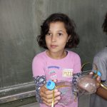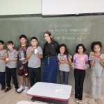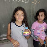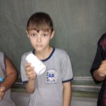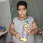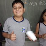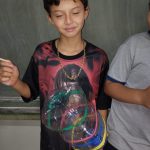 Os alunos exploraram os instrumentos musicais confeccionados com materiais recicláveis e citaram ideias de como confeccionar novos instrumentos musicais.