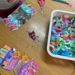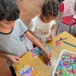 PARA CONFECCIONA-LO, OS ALUNOS UTILIZARAM PALITOS DE CHURRASCO E ROLO DE PAPEL HIGIÊNICO .