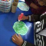 Confeccionamos árvores com rolos de papel toalha.