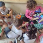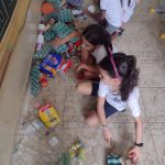 Em um segundo momento foi pedido para as crianças levarem para escola, materiais recicláveis. Primeiramente elas  brincaram livremente com os materiais e em seguida foram desafiadas a separá-los por: vidro, plástico, metal e papel.