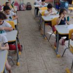 Posteriormente a professora apresentou possibilidades para criar com recicláveis, e propôs que os alunos confeccionassem o boitatá (personagem folclórico – que cuida das florestas).