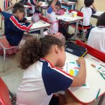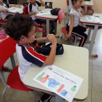 Após a explicação, realizaram uma atividade com o bloco de atividades, onde fizeram de uma forma divertida e prazerosa.