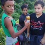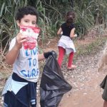 Recolhendo o lixo próximo à escola.