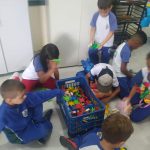 Na turma do segundo ano, com 19 alunos matriculados aproximadamente que frequentam as aulas no período da manhã, a professora propôs conversar com os alunos sobre reduzir os brinquedos industrializados. Todo mundo que já foi criança já teve brinquedos de várias cores e formatos, mas hoje em dia o comércio para o público infantil cresceu sem se preocupar com as demandas ambientais. Reduzir a compra e utilização de brinquedos industrializados é uma maneira de frear os impactos no meio ambiente. No primeiro momento a professora fez grupos onde os alunos puderam brincar com lego e na sequência desenvolveu atividades pedagógicas mostrando o problema e apresentando novas formas que podem ser adotadas pelos alunos. Realizou um gráfico mostrando os tipos de materiais que são produzidos os brinquedos e o tempo de decomposição dos mesmos. Apresentou os alunos que os brinquedos industrializados podem ser produzidos em grande escala, com plásticos, metal, borracha ou madeira, e que esses materiais são retirados da natureza. Durante as aulas a professora conversou que os brinquedos sustentáveis são aqueles produzidos com materiais naturais e/ou biodegradáveis, tais como tecidos orgânicos, madeira certificada, borracha natural e até plástico, desde que reciclado. Para finalizar a professora fez uma campanha de arrecadação de brinquedos para a sala e que cada aluno deverá cuidar da caixa do brinquedo, evitar o desperdício e descartar de forma correta quando o brinquedo perder o sentido ou em alguns momentos reformá-los.