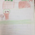 Ao retornar à escola os alunos puderam registrar no caderno por meio de textos o que mais gostou do passeio da horta e registraram por meio de ilustração a atividade.