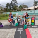 Em um primeiro momento foi assistido a um vídeo da Arteris que falava sobre o trânsito e seus problemas, logo após realizamos uma atividade na qual construímos com as crianças carrinhos, semáforo conhecendo as placas, montamos ruas nas quais eles puderam aprender sobre as regras de trânsito.