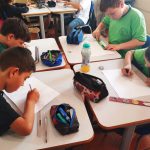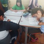 Depois a turma foi dividida em pequenos grupos onde o objetivo foi ilustrar uma cena segura no trânsito.