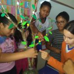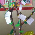 Confeccionamos uma árvore com galho seco e colamos folhas com diferentes materiais. A partir do tema, os alunos escreveram uma mensagem sobre o dia da árvore e penduramos na “árvore dos desejos”.