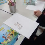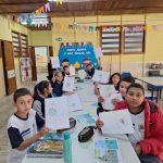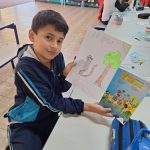 Na aula de artes, os alunos do 5⁰ ano, juntamente com a turma do Infantil realizaram a releitura dos personagens da história em quadrinhos do Zé Quest, fornecidos pela Arteris. Confeccionaremos um mural para expor as obras desenvolvidas.