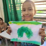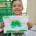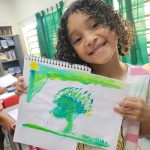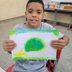 Durante a aula de Arte, a professora explicou sobre a obra de arte ” Árvore”, e em seguida conversaram sobre a importância da preservação ambiental, sobre as queimadas e desmatamento. Extinção de muitos animais. Em seguida, fizeram a releitura com tinta e papel reciclado.