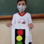 Desenvolvimento: Iniciamos a aula brincando de elefantinho colorido, em seguida durante a roda da conversa falamos sobre as cores do semáforo e suas funções e ordens perante um trânsito seguro. Os alunos citaram o significado de cada cor, qual atitude devemos tomar quando cada uma acende, então utilizamos uma música para fixar aquilo que aprendemos durante a conversa https://www.youtube.com/watch?v=pG8vSFx48f0 .Citamos as atitudes que não devemos tomar para evitar acidentes, tanto como motoristas, quanto como pedestres. É claro que não deixamos de falar do sinal de pedestres e sua importância na prevenção de acidentes. Fizemos algumas simulações para que eles pudessem praticar e aprender como utilizar. Apresentamos também duas atividades, sugestão da ARTERIS. Uma QUAL LETRA ESTÁ FALTANDO? e a outra CONTE OS CARRINHOS. Durante a realização das atividades, envolvimento, colaboração e cooperação entre os alunos. Para encerrar os alunos fizeram uma atividade de registro onde deveriam pintar e depois montar o semáforo de forma correta. Alguns pais dos alunos que fizeram esta atividade pela primeira vez ficaram surpresos com o tanto de informações que levaram para casa e as cobranças quando passam pelo sinal. “Está Vermelho, não pode passar” / “Verde, pode passar”. Atitude positiva faz o trânsito fluir.
