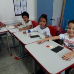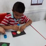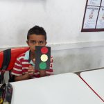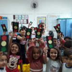 Seguindo com as atividades do Maio Amarelo, a atividade a ser desenvolvido pelos alunos do 1° ano foi a de confeccionar os semáforos a serem utilizados na apresentação que eles iriam realizar perante todos os alunos da escola no dia seguinte para comemorar o mês da prevenção de acidentes no trânsito.
