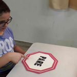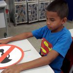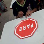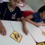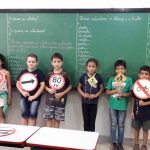 Foi trabalhado a confecção de placas de sinalização que eles já identificaram no livro de Leis de Trânsito.