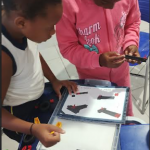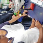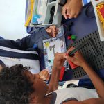 Após o encaixe das peças, as crianças receberam instruções de como inserir a bateria e as lâmpadas com as cores próprias do semáforo.