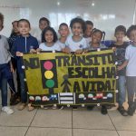 Esta aula teve como objetivo, despertar nos alunos a necessidade do cumprimento de regras no trânsito a partir de um texto informativo e conhecer o funcionamento dos semáforos a partir de atividades práticas na realização de cartaz.