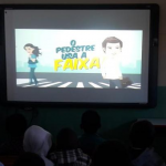 Os alunos assistiram o vídeo “Pedestre e os seus direitos e deveres”, uma animação muito interessante e objetiva, focada em apresentar quais são os direitos dos pedestres, mas também os seus deveres, aquilo que uma precisa fazer para manter a sua segurança e a das outras pessoas no trânsito. Dentre tantos outros deveres do pedestre podemos também ressaltar: atravessar sempre na faixa de pedestres e quando o semáforo estiver vermelho para os carros, obedecer à sinalização, usar sempre capacete, cinto e os demais itens de segurança. Que os pedestres têm prioridade de passagem quando atravessam a via sobre as faixas; nas áreas com semáforo, os pedestres continuam tendo prioridade, ainda que não tenham concluído a travessia; em áreas sem calçadas, o acesso será feito com prioridade pelas bordas da pista, sempre em sentido contrário ao dos veículos.